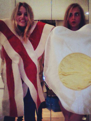 Além de tudo, a Cara AMA bacon, já assumiu para o mundo inteiro e vive postando sobre isso no seu instagram (que por sinal é um dos mais badalados, @caradelevingne, com mais de 4 milhões de seguidores), como algumas dessas imagens: na primeira ela havia levado bacon pro backstage do desfile para poder ficar mais calma, segundo ela o Bacon é sua única preparação para desfilar. Na quarta imagem ela estava passando um brilho labial sabor bacon que havia ganhado kkk Só existe uma Cara mesmo... Espero que tenham gostado meninas, Beijos :*